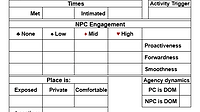 I bring to you a casual encoutner generator compatible to use with the spread. First you fill the encounter sheet, then you play the scenario using the spread, it's a win win...